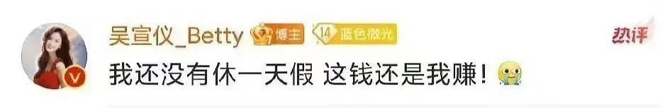 到这里似乎还莫得什么,但随后她在我方挑剔区暗意:“我莫得休一天假,这钱如故我赚!”EMMM……等闲打工东谈主过年也有不时息的,然则他们赚的连明星的零头王人莫得。