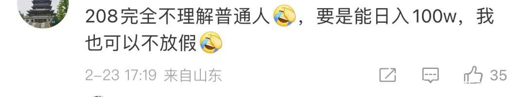 仔细想想还挺挖苦的,浮躁复工的粉丝如果不是迫于经济压力,竣工不错经受其他的出行样式,何须要这样祸害地抢车票?而坐在空调房里正在直播的赵露想,这一场行径下来可能就能拿到粉丝一年甚而更久赚的工资。在这种情况下,粉丝还要被赵露想训诲一句“飞速的沿途上班”,确实东谈主类的悲欢并不重叠,208万们无法共情等闲东谈主的祸害。